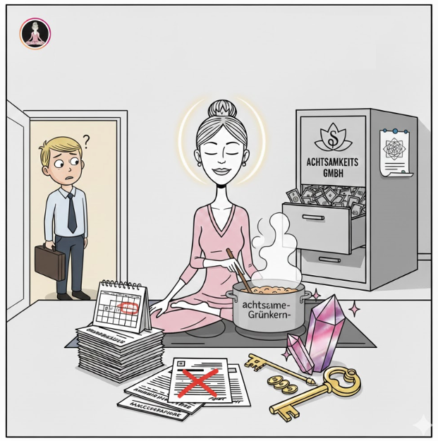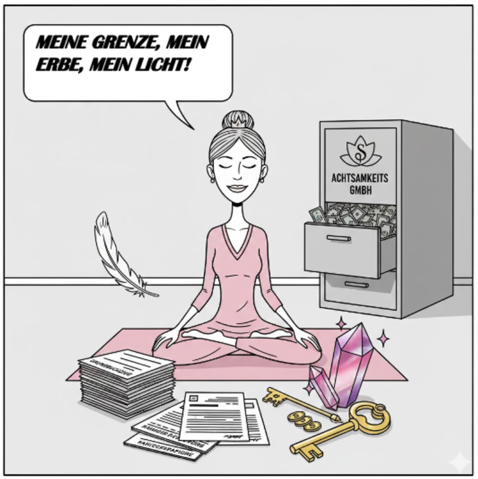 Achtsamkeit bedeutet auch, den Wert der eigenen Energie zu kennen. In meinem Reich – der Achtsamkeits GmbH – lehre ich, dass alles im Fluss sein muss. Ein Geben und ein Nehmen. 🌊⚖️