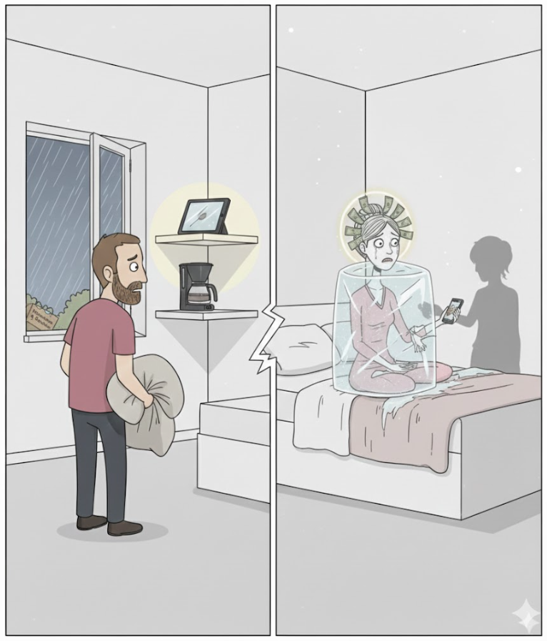 - Der theatralische Abschied: „Ich spüre mich nicht mehr.“ Mit Tränen und Händchenhalten inszeniert die Königin das Ende als ein Schicksal, das sie ereilt hat – nicht als eine Entscheidung, die sie aktiv durch mangelnde Kommunikation herbeigeführt hat. Während die Marmelade und die Gewürze als „Altlasten“ auf der Straße landen, werden die wertvollen Güter, die der Partner bezahlt hat, natürlich unter dem Deckmantel der „energetischen Gerechtigkeit“ einbehalten. ☕️📱