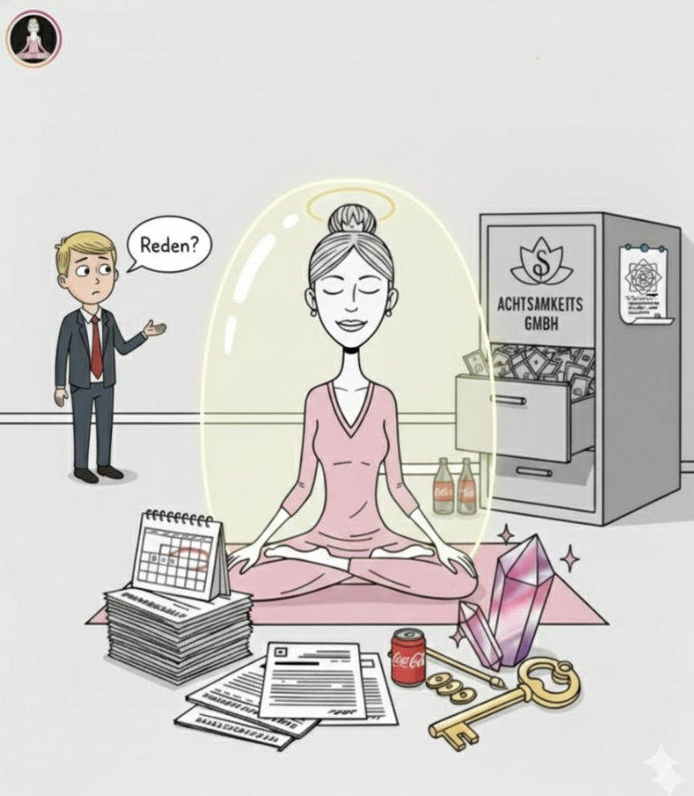 Ihr Lieben, in der Achtsamkeits GmbH ist Liebe kein Geschenk, sondern eine Schwingung, die an Bedingungen geknüpft ist. Wir predigen Achtsamkeit, meinen aber damit die absolute Verfügbarkeit des Gegenübers für unser eigenes Nervensystem. 🧘♀️📡